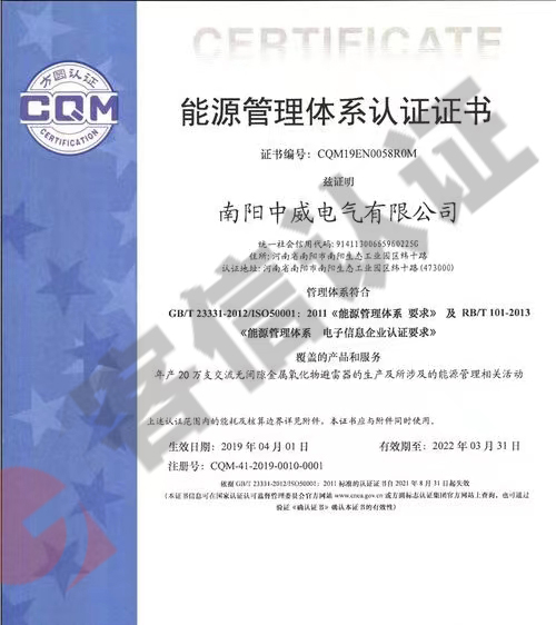 > 恭喜南陽(yáng)中威電器有限公司獲取能源管理體系