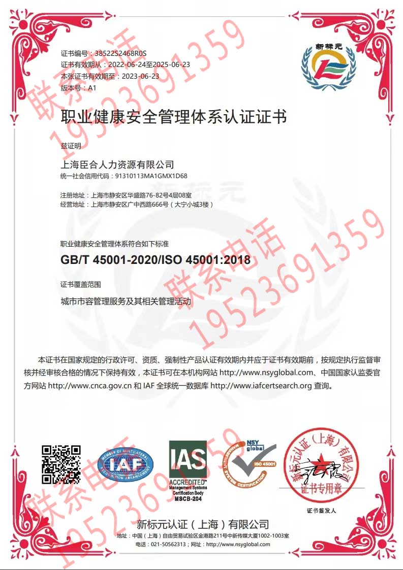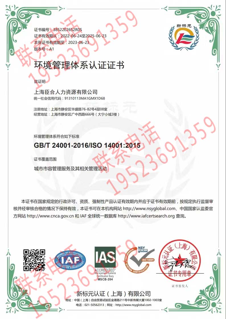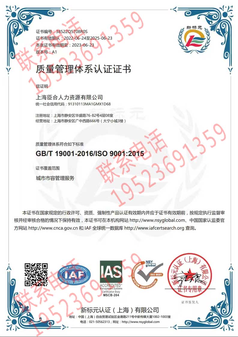恭喜上海臣合人力資源有限公司獲得ISO三體系認(rèn)證證書